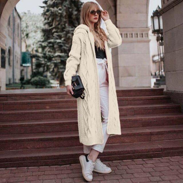 アウター カーディガン ロングコート ロング ロング丈 袖あり 長袖 襟付き フード付き 前開き 編み込み ニット 厚手 かわいい カジュアル おしゃれ かっこいい こなれ感 ボーイッシュ スポーティー ラブリー キュート ガーリー ツイスト 秋 冬 10代 20代 30代 40代 50代