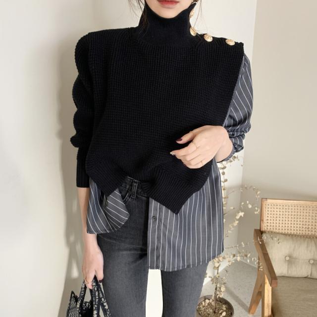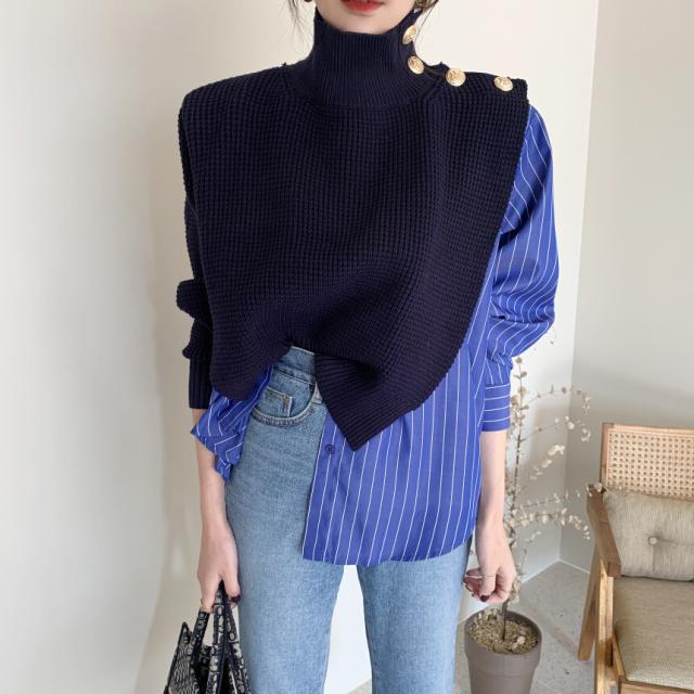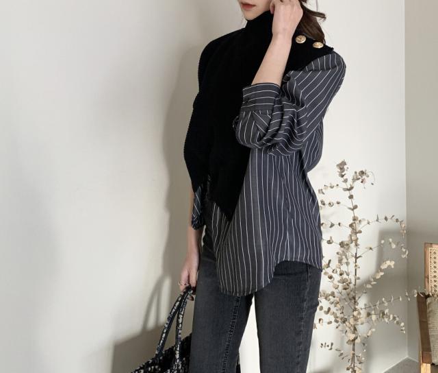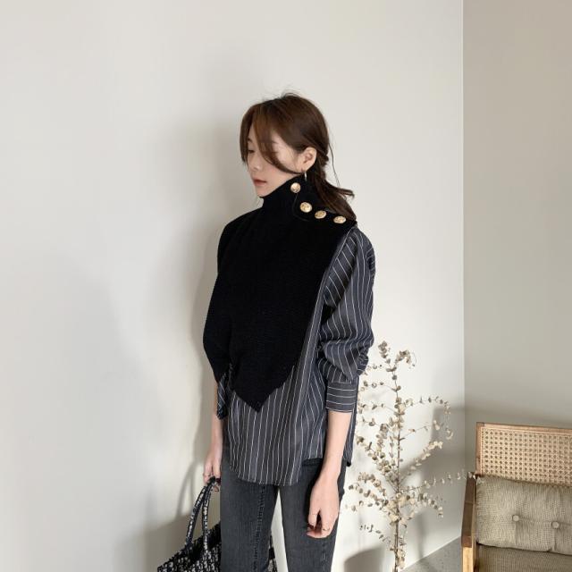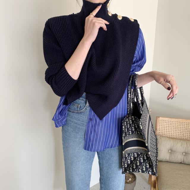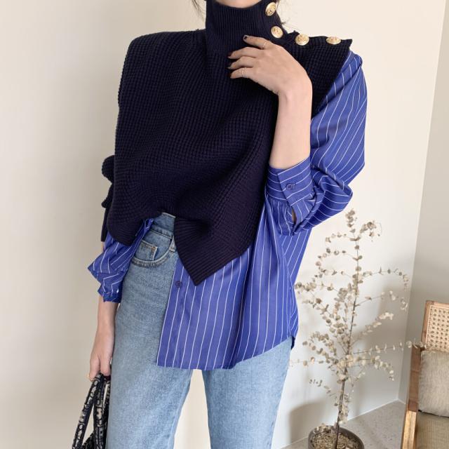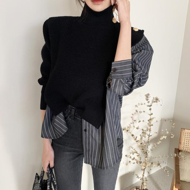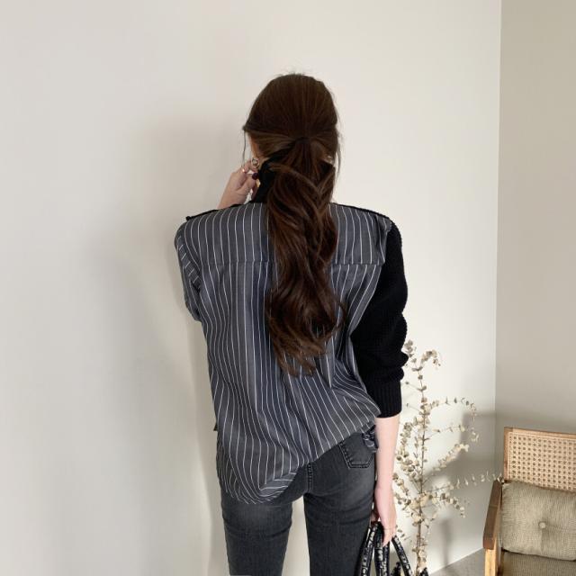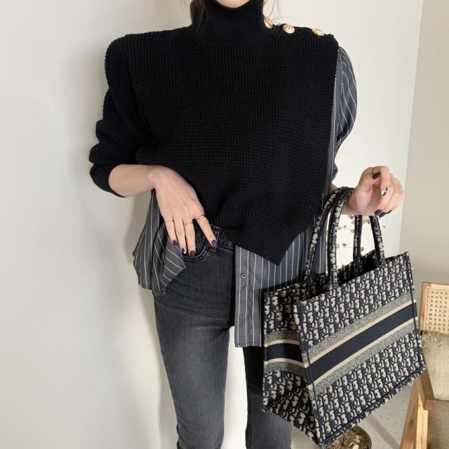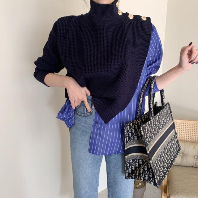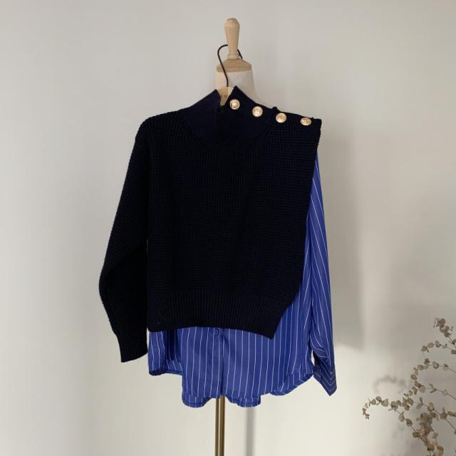 ニット シャツ 切り替え ドッキング トップス ニットソー セーター 袖あり 長袖 ハイネック 切り替えデザイン バックシャン バックコンシャス リブニット 編み込み ニット かわいい 大人可愛い きれいめ カジュアル 大人 上品 おしゃれ 大人女子 こなれ感 個性的 クール ストライプ 秋 冬 10代 20代 30代 40代 オフィス ビジネス OL 通勤 デート お出かけ 休日 普段使い 重ね着 韓国系 ファッション コーデ トレンド インスタ映え フリーサイズ 2色展開 ブルー グレー