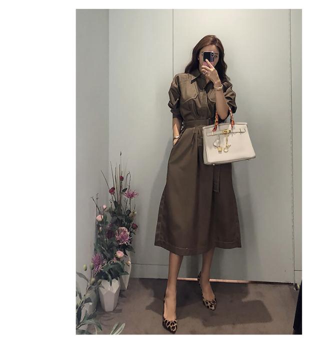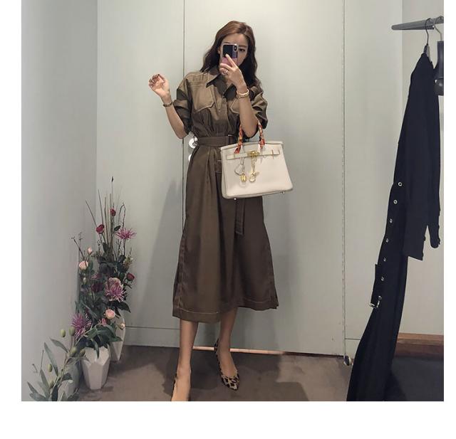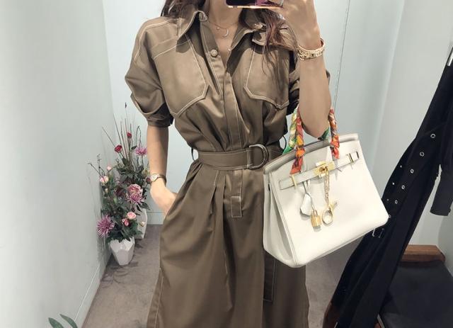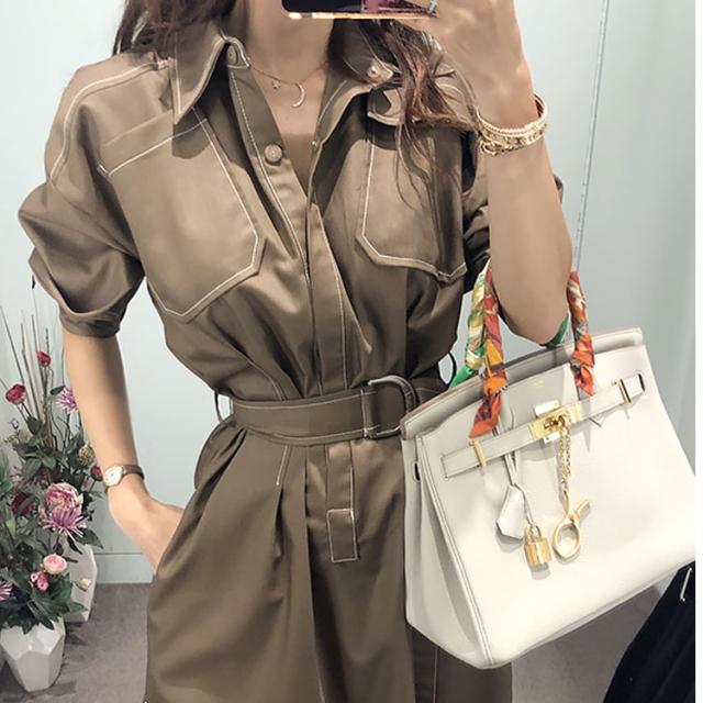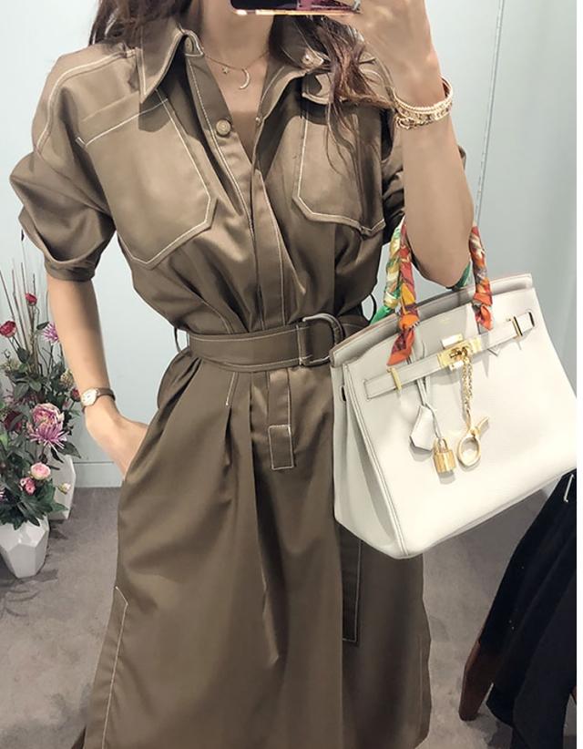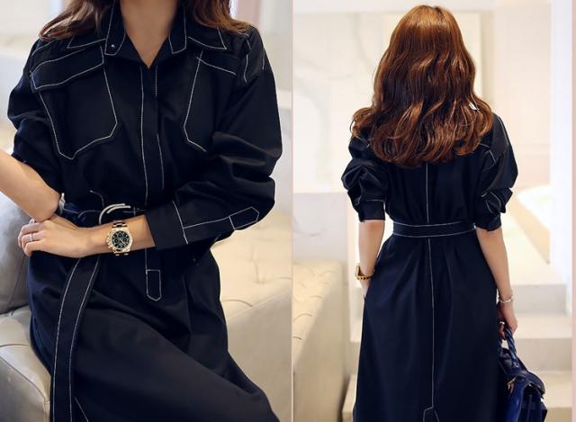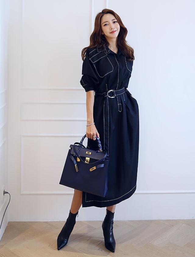 全体的にあしらわれたホワイトステッチが程よいカジュアル感を演出するミディアムワンピース。