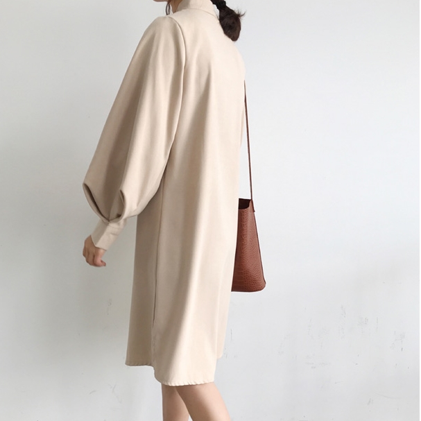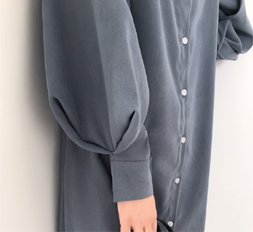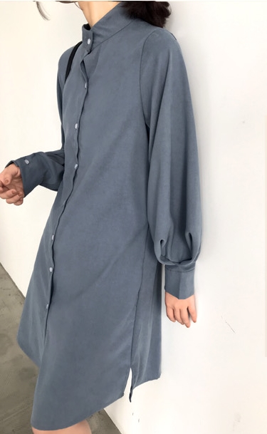 バンドカラー シャツワンピ パフスリーブ ワンピース 膝丈 ひざ丈 長袖 ポワン袖 スタンドカラー マオカラー Iライン 前開き かわいい 大人可愛い きれいめ シンプル カジュアル 大人 上品 おしゃれ 大人女子 こなれ感 ラフ ラブリー ルーズ モダン とろみ感 無地 春 秋 10代