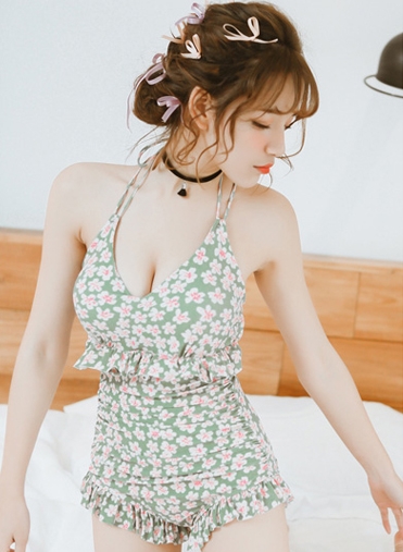 背中見せ バッククロス 小花柄 水着 ワンピース水着 体系カバー水着 ワンピース ホルターネック クロスバンド フリル バックリボン 胸元 谷間 谷間魅せ 盛れる かわいい 大人可愛い カジュアル ナチュラル おしゃれ レトロ 女っぽ ラブリー キュート ガーリー アジアン 柄 花柄 フラワー 10代 20代 30代 40代 50代 60代 春 夏 海 ビーチ プール リゾート 旅行 体系カバー スタイルアップ 韓国 ファッション コーデ スタイル 高見え インスタ映え M L XL ブラック グリーン