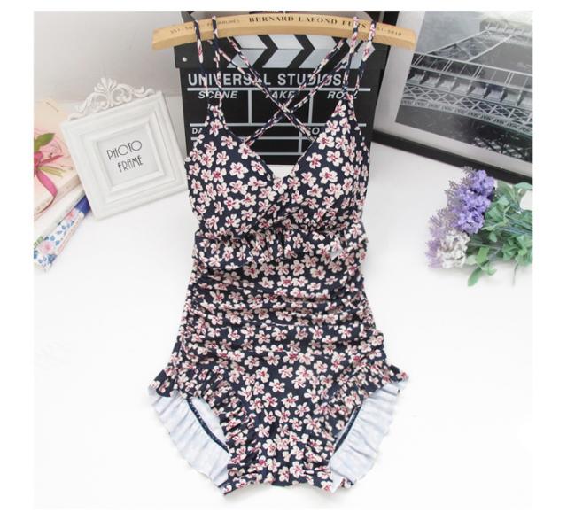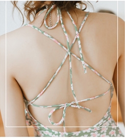 背中見せ バッククロス 小花柄 水着 ワンピース水着 体系カバー水着 ワンピース ホルターネック クロスバンド フリル バックリボン 胸元 谷間 谷間魅せ 盛れる かわいい 大人可愛い カジュアル ナチュラル おしゃれ レトロ 女っぽ ラブリー キュート ガーリー アジアン 柄