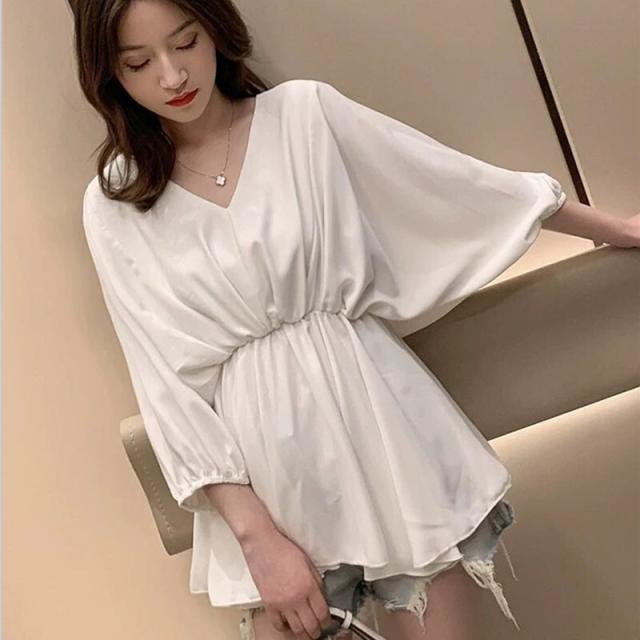 ウエストしぼり バルーン袖 シフォン とろみブラウス Vネック トップス ブラウス チュニック 袖あり 7分袖 七分袖 ボリューム袖 ドルマンスリーブ フレア ウエストマーク かわいい 大人可愛い きれいめ シンプル カジュアル 大人 上品 おしゃれ ラブリー キュート モード系 エレガント 無地 春 夏 秋 10代 20代 30代 40代 50代 60代 オフィス ビジネス OL 通勤 デート 休日 着回し 普段使い 体系カバー トレンド インスタ映え M L XL 2XL 3XL ゆったり 3色展開