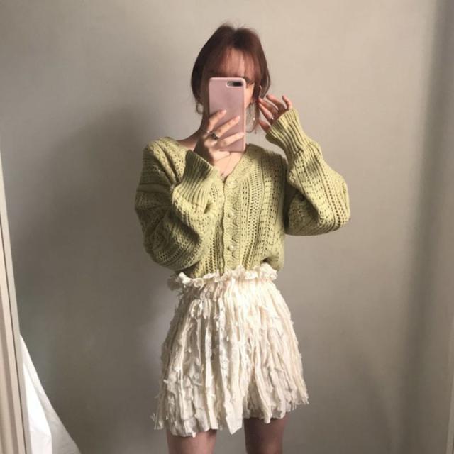 ゆるっとしたシルエットが抜け感を出してくれるニットカーディガン。
