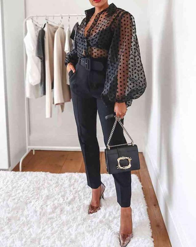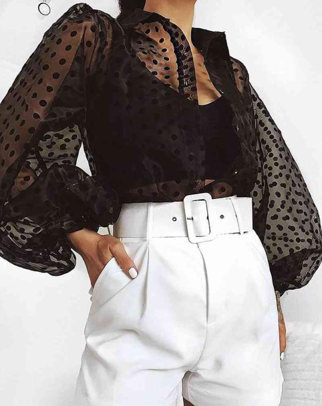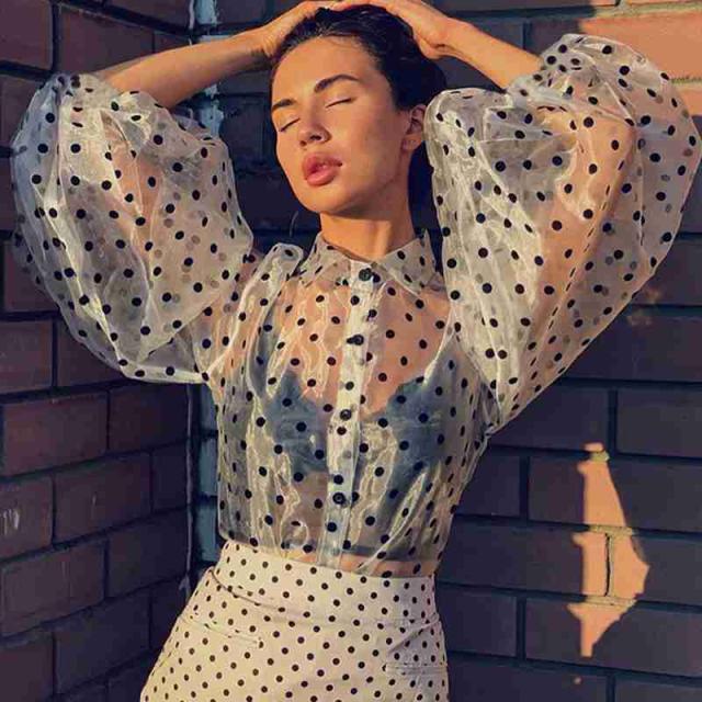 トップス シャツ ブラウス 袖あり 長袖 ボリューム袖 襟付き チュール 透け感 シースルー かわいい 大人可愛い きれいめ シンプル カジュアル 大人 上品 おしゃれ レトロ 大人女子 こなれ感 ラフ ラブリー キュート ガーリー 個性的 クール モード系 セクシー エレガント モダン ドット柄 水玉 春 夏 秋 10代 20代 30代 レディース デート お出かけ 女子会 休日 イベント 着回し 普段使い 重ね着 韓国 オルチャン ファッション モテ プチプラ トレンド インスタ映え ゆったり ゆる