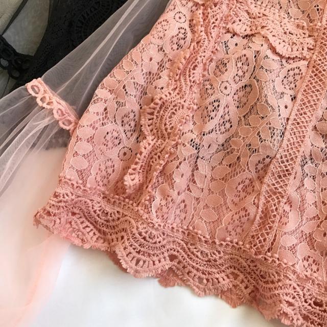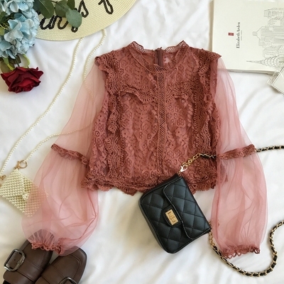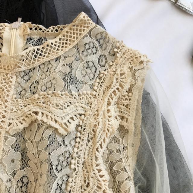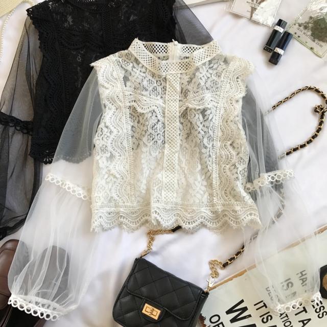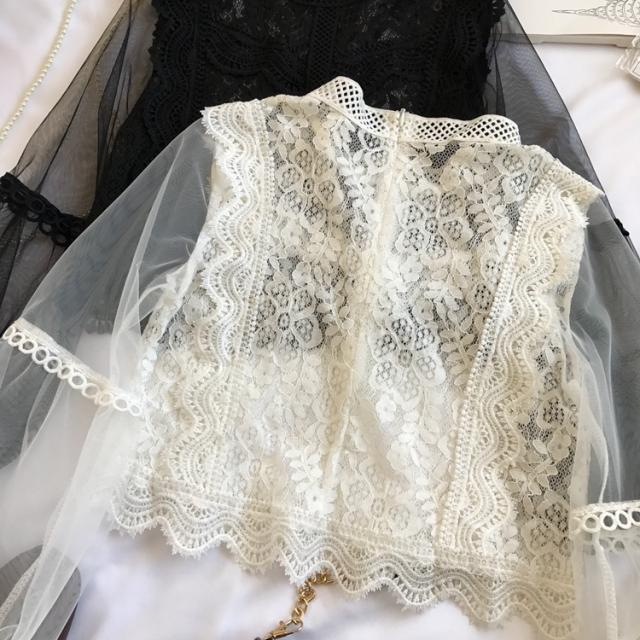 ブラウス レースシャツ トップス 袖あり 長袖 ボリューム袖 Uネック 襟なし レース 刺繍 チュール シフォン 切り替えデザイン ドッキング ふわふわ 透け感 シースルー かわいい 大人可愛い きれいめ カジュアル 大人 上品 おしゃれ 大人女子 ラブリー キュート ガーリー モード系 セクシー エレガント モダン 冠婚葬祭 10代 20代 30代 40代 レディース 女性用 デート お出かけ パーティー イベント ホテル レストラン 着回し 普段使い 韓国系 コーデ インスタ映え フリーサイズ
