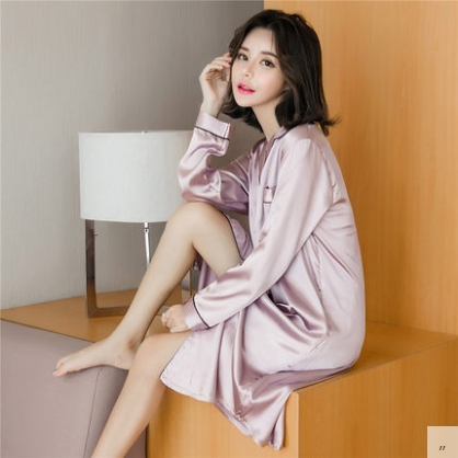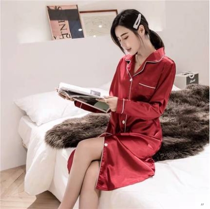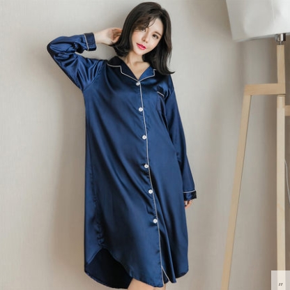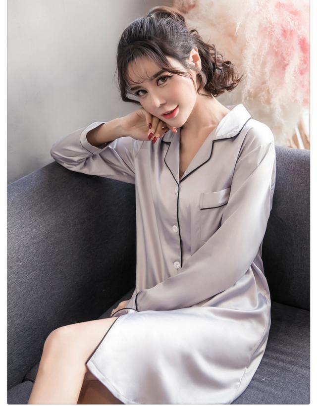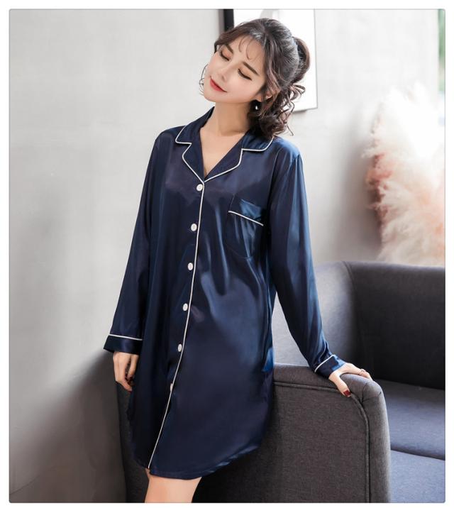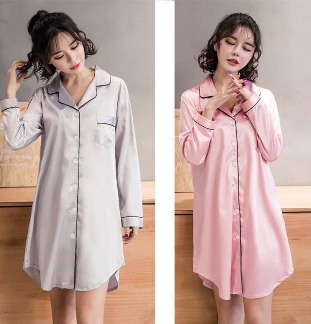 ルームウェア パジャマ 部屋着 寝巻き ナイトウェア ネグリジェ 膝丈 ひざ丈 膝下 袖あり 長袖 Vネック 襟付き ポリエステル きれいめ シンプル カジュアル 大人 上品 おしゃれ お洒落 かっこいい ラフ ルーズ セクシー エレガント とろみ感 無地 オールシーズン 10代 20代
