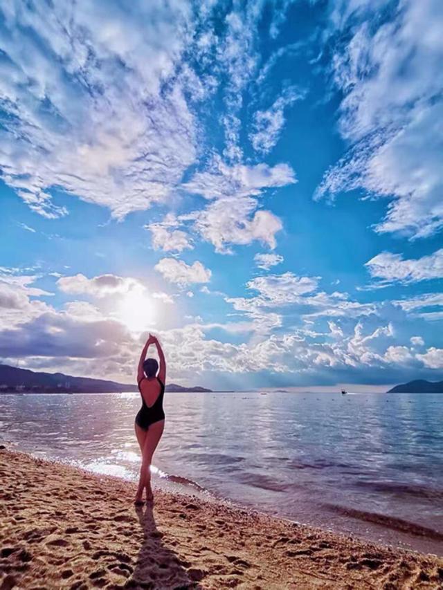 背中が大きく開いたシンプルなワンピース。