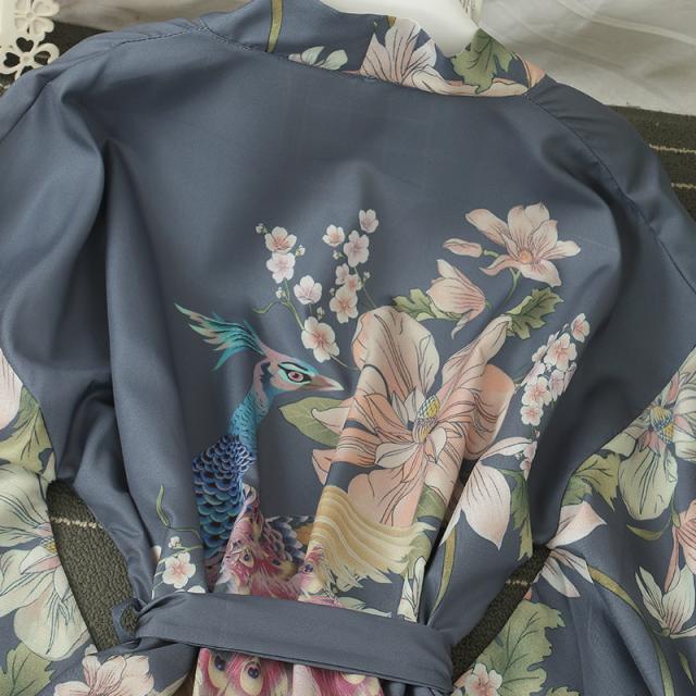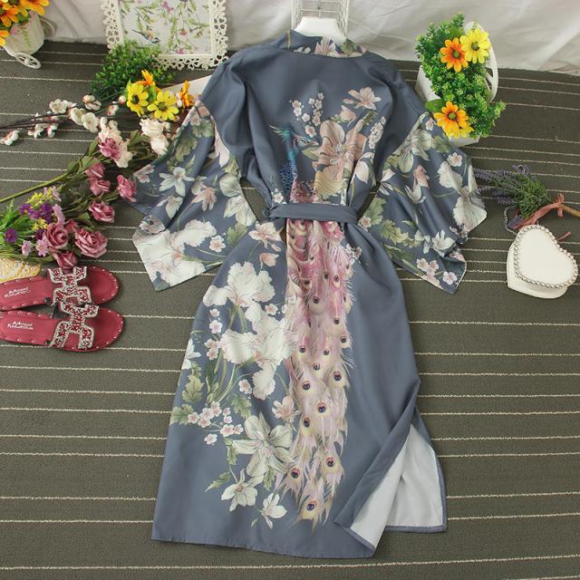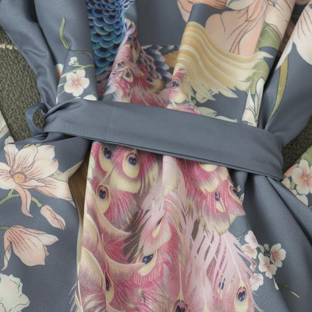 孔雀と花柄デザインの優雅な和柄羽織もの。