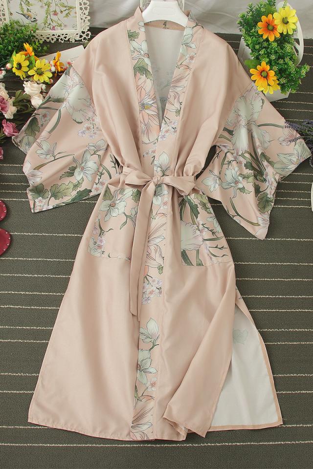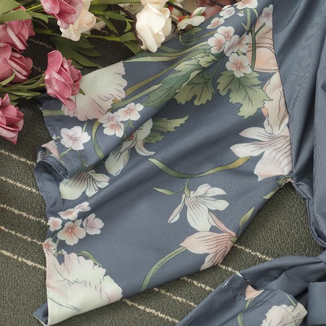 ルームウェア パジャマ ガウン ネグリジェ 膝下 ミモレ ミモレ丈 ミディアム丈 袖あり 長袖 ボリューム袖 襟なし かわいい 大人可愛い きれいめ 大人 上品 おしゃれ お洒落 アジアン エスニック 大人可愛い 大人女子 こなれ感 ルーズ モダン 存在感 とろみ感 柄 花柄 オールシーズン シーズンレス 20代 30代 40代 50代 60代 レディース 女性用 ママ 女子会 お泊まり 休日 リゾート 旅行 海 普段使い 重ね着 フリーサイズ 青 ブルー ピンク くすみカラー 大人カラー