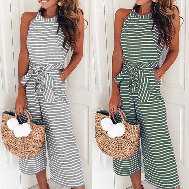 セットアップ オールインワン ワイドパンツ ガウチョパンツ ミモレ ミモレ丈 7分丈 ミディアム丈 袖なし ノースリーブ ワイド ガウチョ リボン ウエストマーク ウエストリボン かわいい 大人可愛い シンプル カジュアル おしゃれ お洒落 かっこいい 大人可愛い こなれ感 ラフ ガーリー 柄 ストライプ 夏 10代 20代 30代 40代 レディース 女性用 ママ お出かけ 公園デビュー 女子会 休日 リゾート 旅行 海 プール ガーデン 普段使い ファッション スタイル 楽ちん 体系カバー 脚長