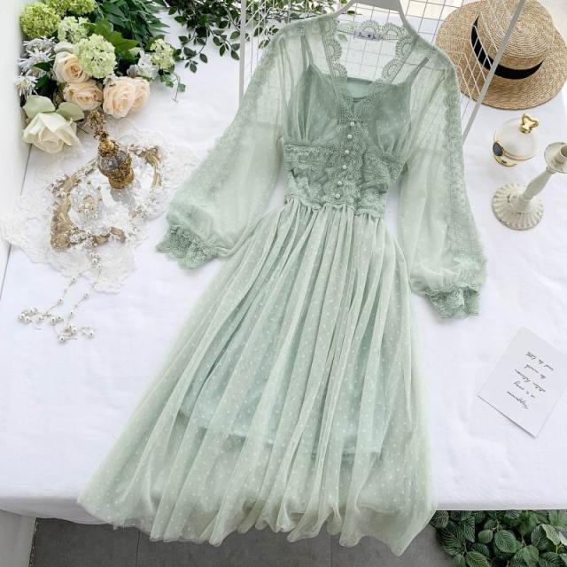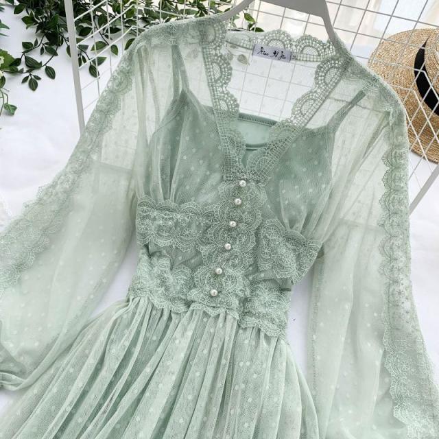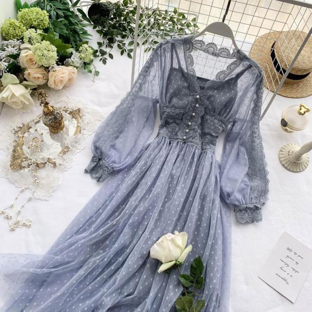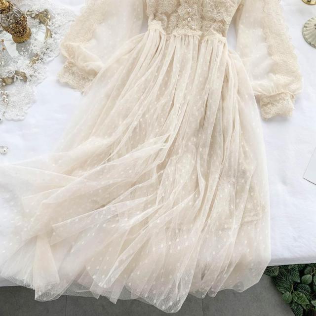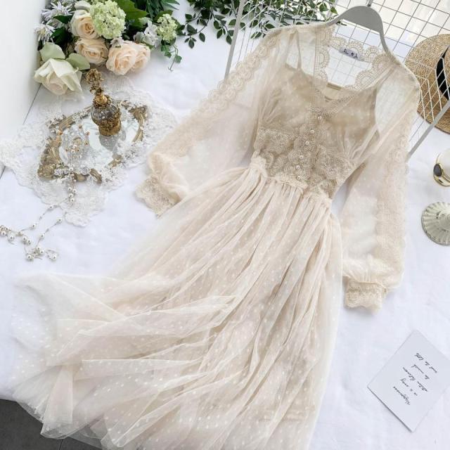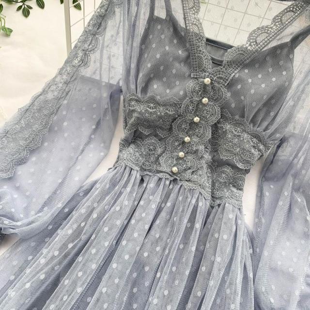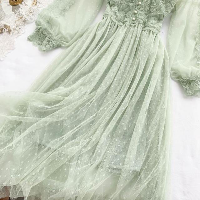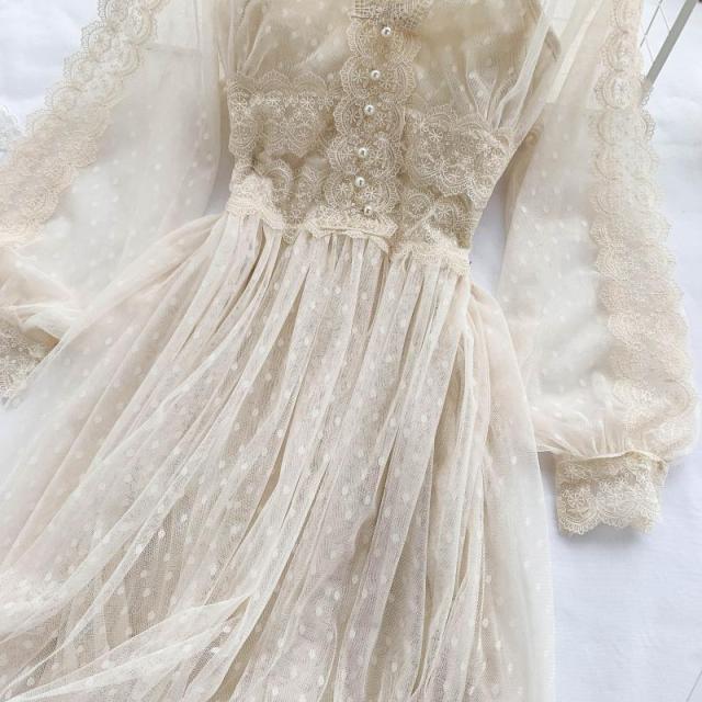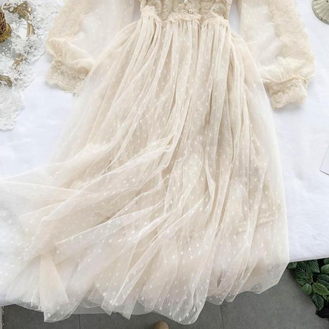 チュール ワンピース ロングスカート フレアワンピース ティアードワンピース ワンピドレス ロング ロング丈 長袖 ボリューム袖 パフスリーブ Vネック フレア レース チュール シフォン ウエストマーク ハイウエスト 透け感 シースルー パール かわいい きれいめ 上品 おしゃれ 大人女子 ラブリー キュート ガーリー 主役級 存在感 とろみ感 ドット柄 水玉 春 結婚式 冠婚葬祭 10代 20代 30代 レディース用 デート パーティー イベント レストラン 韓国系 ファッション コーデ スタイル