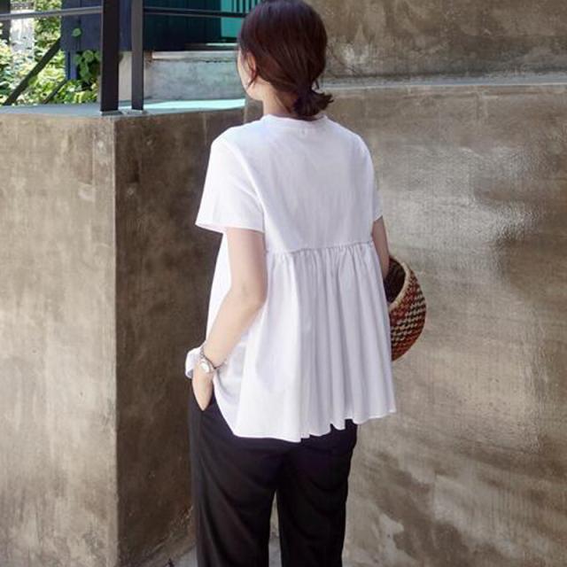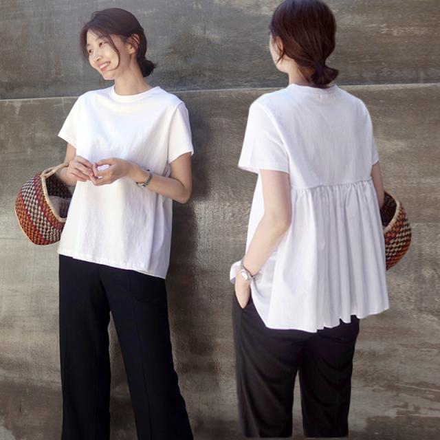 トップス Tシャツ ブラウス 白シャツ 白トップス 袖あり 半袖 Uネック ラウンドネック フレア 切り替えデザイン プリーツ バックコンシャス かわいい 大人可愛い きれいめ シンプル カジュアル 大人 上品 おしゃれ 大人女子 こなれ感 ラフ 個性的 クール モード系 エレガント モダン 無地 春 夏 10代 20代 30代 40代 レディース お出かけ 女子会 休日 韓国 オルチャン スタイル 楽ちん プチプラ トレンド 白 ホワイト