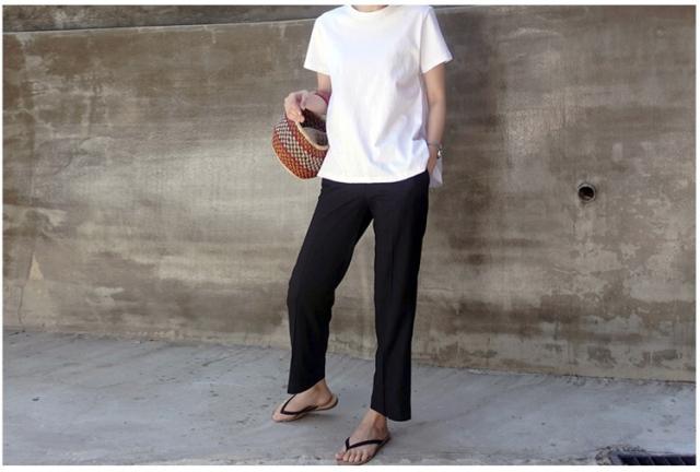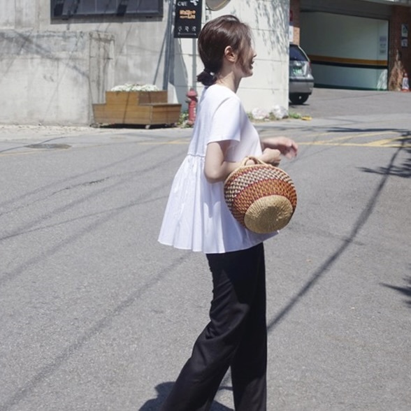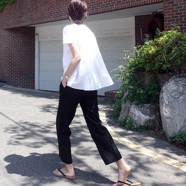 一見カジュアルですが、後ろ姿はフェミニンでとてもおしゃれです。