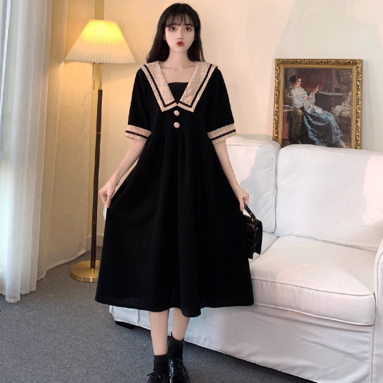 セーラー風レトロワンピース ワンピース デート ワンピドレス ひざ丈 膝下 袖あり 半袖 襟付き 角襟 フレア セミフレア Aライン スマート かわいい 大人可愛い おしゃれ お洒落 かっこいい レトロ こなれ感 ラブリー キュート ガーリー 個性的 主役級 存在感 フォーマル 抜け感 無地 春 夏 秋 誕生日 入学式 入園式 卒業式 卒園式 謝恩会 二次会 ハロウィン バレンタイン 10代 20代 30代 40代 50代 60代 レディース 女性用 OL 通勤 学生 通学 デート お出かけ 女子会