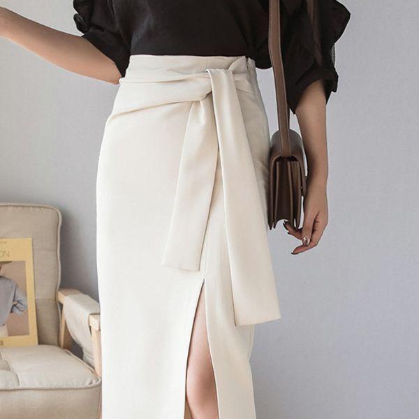 スカート デート ひざ丈 膝下 スリム タイト Iライン スマート ウエストリボン スリット かわいい 大人可愛い きれいめ シンプル カジュアル 大人 上品 おしゃれ お洒落 かっこいい 大人可愛い 大人女子 こなれ感 ラフ ラブリー キュート ガーリー 主役級 存在感 フォーマル とろみ感 抜け感 無地 春 夏 秋 冬 オールシーズン 誕生日 入学式 入園式 卒業式 卒園式 謝恩会 二次会 ハロウィン クリスマス バレンタイン 女性用 OL 通勤 学生 通学 デート アイボリー ブラック
