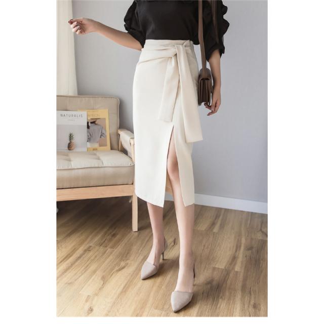 スカート デート ひざ丈 膝下 スリム タイト Iライン スマート ウエストリボン スリット かわいい 大人可愛い きれいめ シンプル カジュアル 大人 上品 おしゃれ お洒落 かっこいい 大人可愛い 大人女子 こなれ感 ラフ ラブリー キュート ガーリー 主役級 存在感 フォーマル