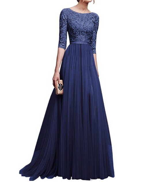 ドレス 衣装 パーティードレス 結婚式ドレス 二次会ドレス 披露宴ドレス カラードレス ロングドレス 演奏会ドレス 舞台衣装 ロング 5分袖 ボートネック Aライン プリーツ レース チュール シフォン かわいい きれいめ シンプル 上品 おしゃれ 大人可愛い 大人女子 ラブリー