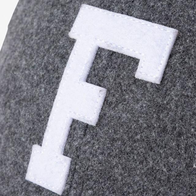 正面にあしらったワンポイントの刺繍デザインは立体的なフェルトワッペン。
