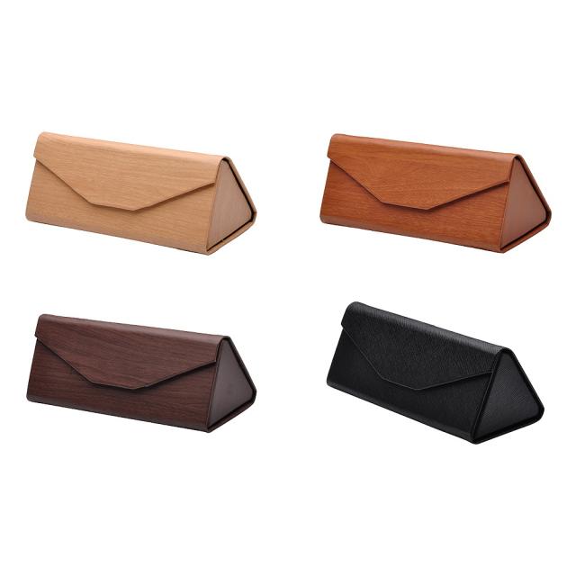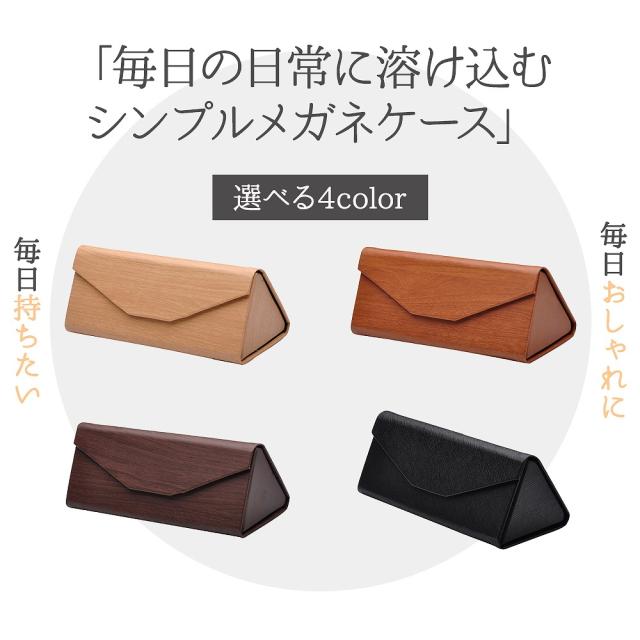 メガネケース 折りたたみ時厚さ1.5cm かさばらない コンパクト 三角型 木目調 レザー調 ライトブラウン ブラウン ダークブラウン ブラック ギフト シンプル 眼鏡 agesugi_sfa