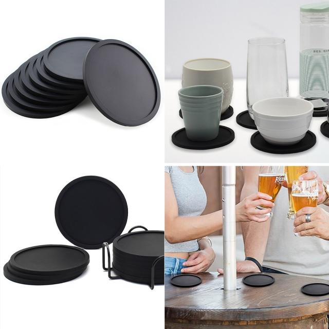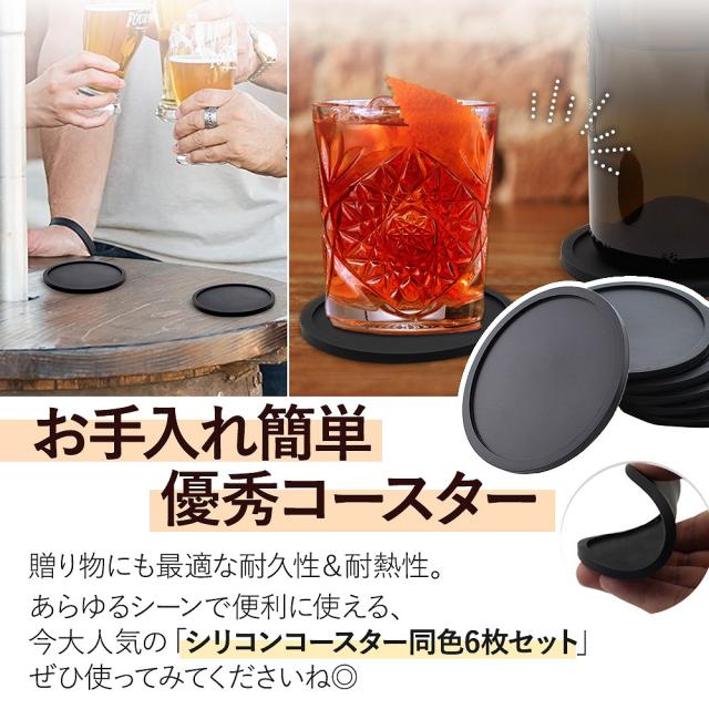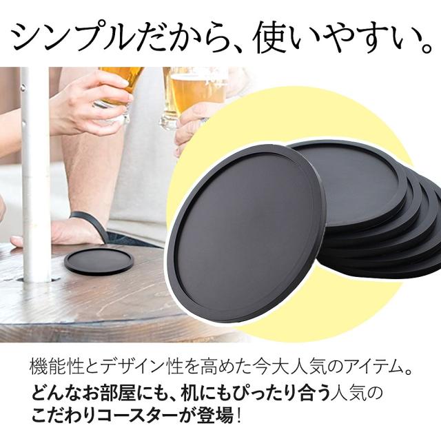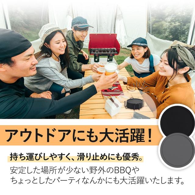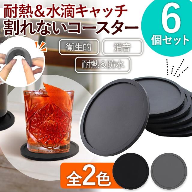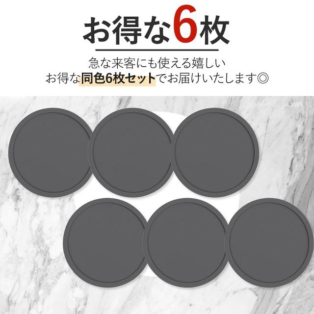シリコンコースター 6枚セット 丸形 耐水 耐熱 防水 立体 ソフト キッチン 軽量 アウトドア 滑り止め 鍋敷き シンプル ブラック グレー モダン おしゃれ 人気 agesugi_snk