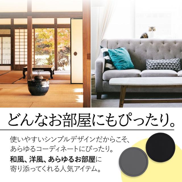 | 主な仕様 | 【カラー】 ブラック、グレー 【仕様】 同色6個セットでお届け 【サイズ】 直径:約10cm 厚み:約5mm |
