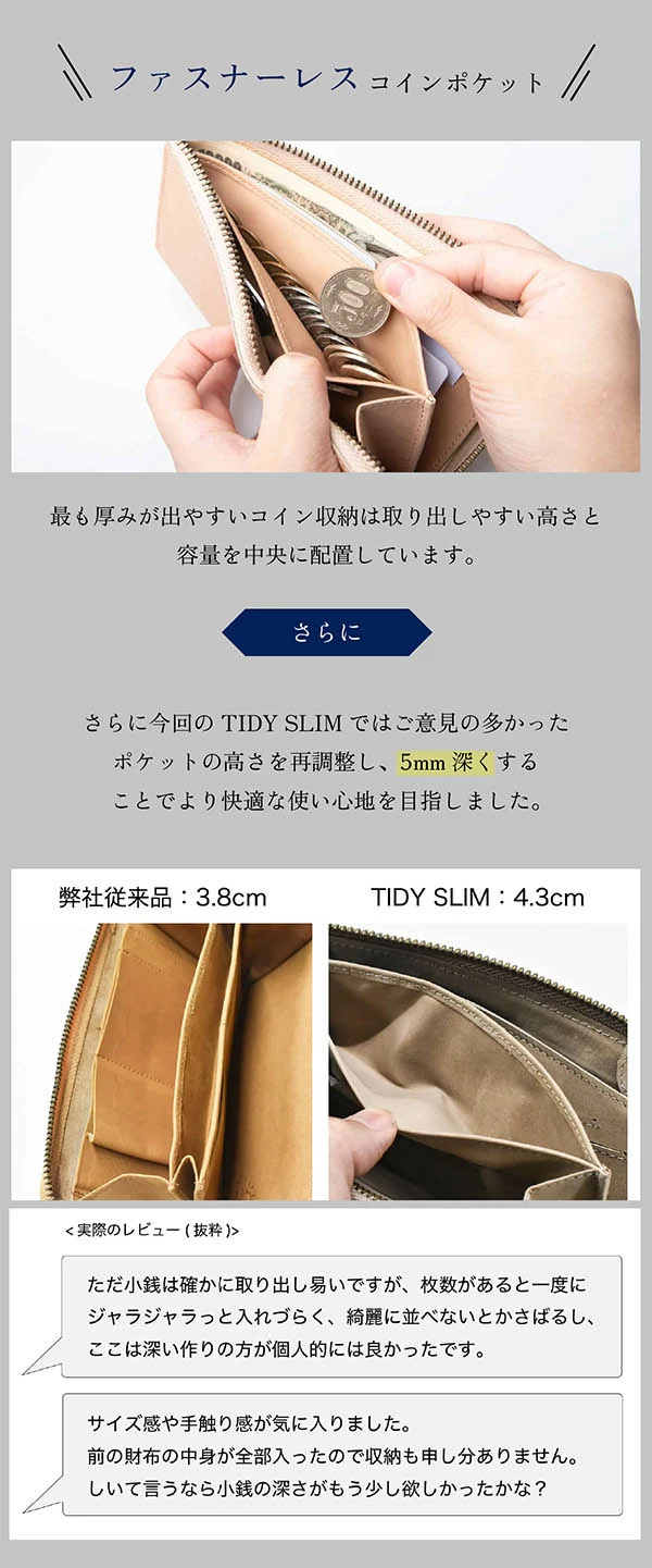 ■「小さい長財布」だから機能性も携帯性も新しい。整理整頓革財布TIDYのスリムモデル