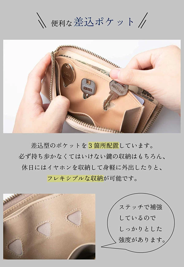 - カラー、手触りなどなどとても良かったです! ただ、小銭入れが思ったより浅くてほんとに少ししか入らないんだなぁって思いました。 もう少し深い方が飛び出したりしないでかつ容量も増えるのかなと思いました。