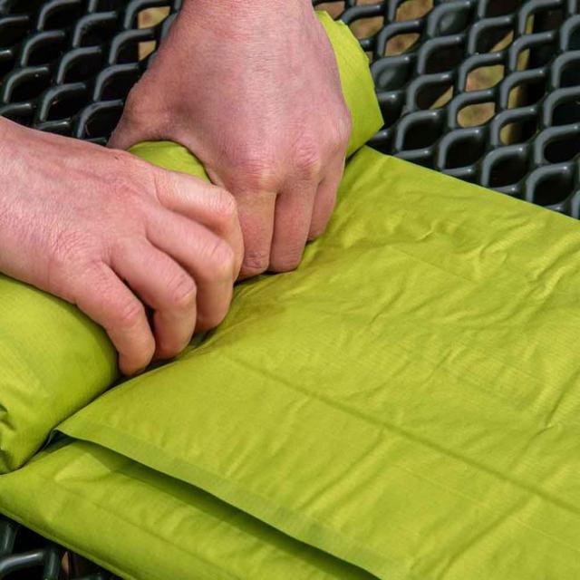 リサイクルされた20Dリップストップフェイス生地を採用し、myclimateによりカーボンニュートラルを認定された超軽量でコンパクトなスリーピングマット。