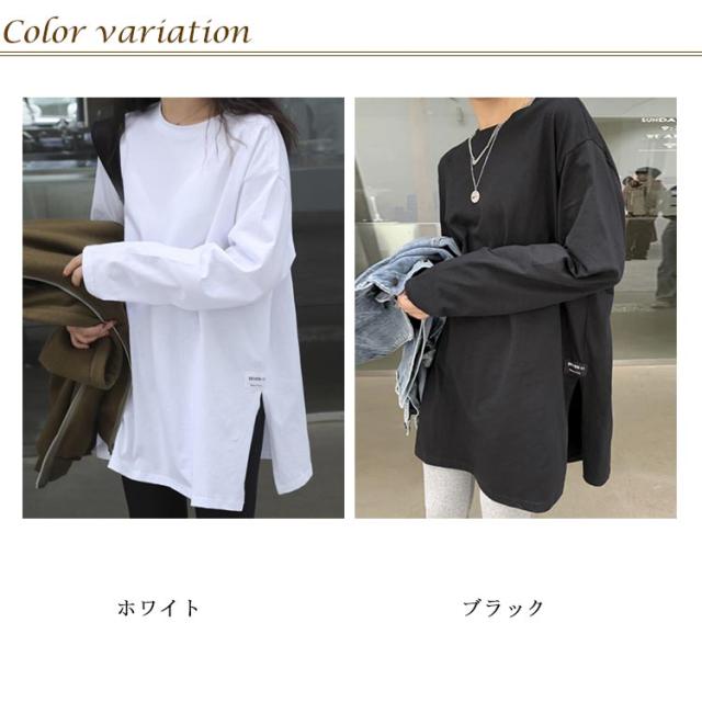 送料無料 チュニックTシャツ カットソー レディース 長袖 Tシャツ ロンT ロンティー コットン tシャツトップス プルオーバー 大人 カジュアル シンプル レイヤード サイド 裾 スリット ロング丈 チュニック お洒落 可愛い