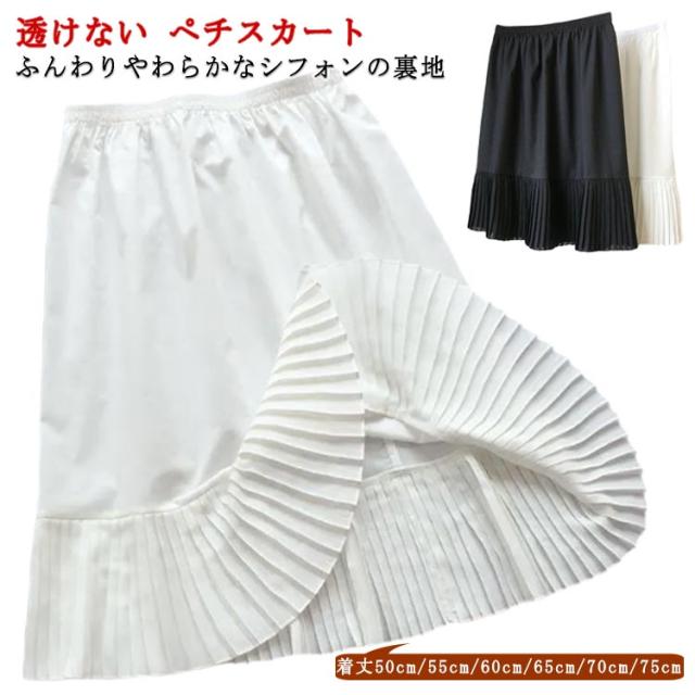 ペチコート シフォン プリーツスカート インナースカート インナー 透けない ぺチスカート アンダースカート 重ね着 レイヤード ミモレ丈 膝丈 ウエストゴム ドレスインナー キレイめ 大人可愛い ブラック ホワイト