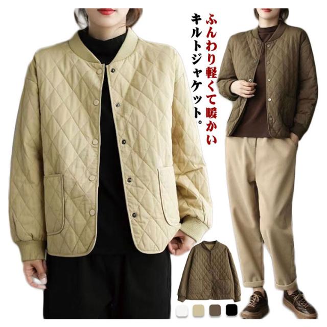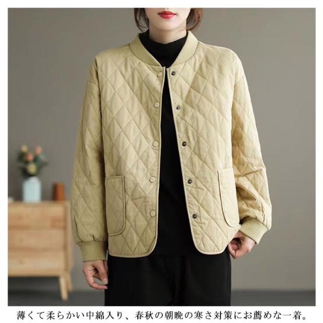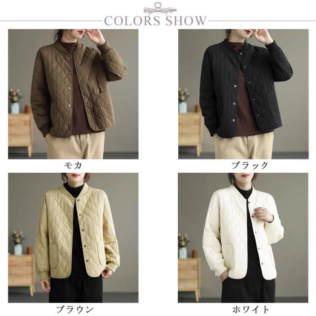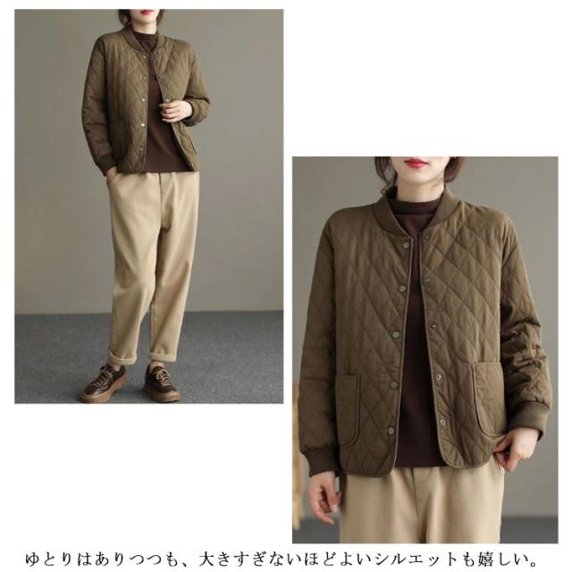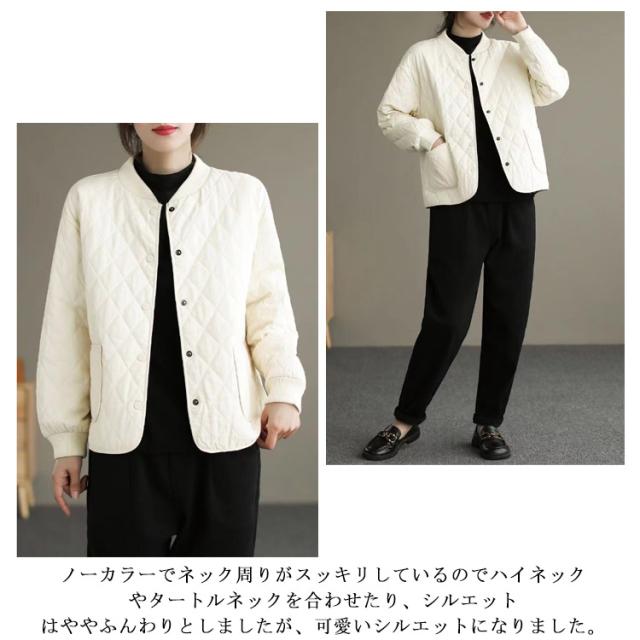 レディース コート キルティングコート 中綿 中綿コート ノーカラージャケット ゆったり ブルゾン ジャケット ノーカラーコート ショート丈 無地 軽量 ジャケット