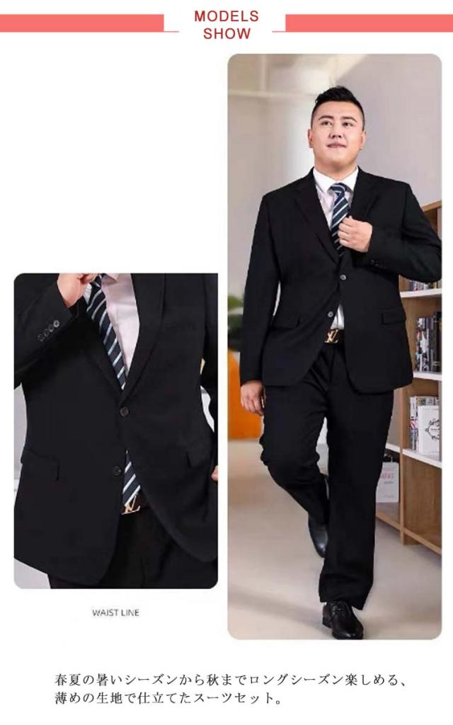 | 春夏の暑いシーズンから秋までロングシーズン楽しめる、薄めの生地で仕立てたスーツセット。 体に自然にフィットさせた美シルエットを実現、全体的な印象もスタイリッシュに魅せてくれます。 落ち着いた大人の雰囲気を演出してくれ、様々なシーンでご着用頂けるおすすめのジャケットです。 更に、より多くの人に着ていただきたくて、サイズバリエーションはジャストからオーバーまでM〜9XLのサイズをご用意しております。 | |