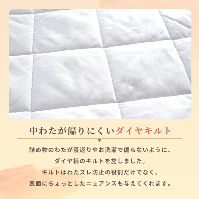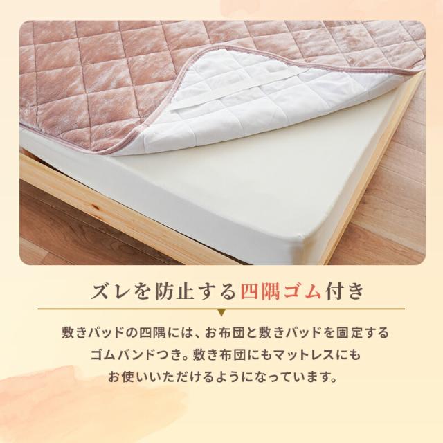 | ・とろ〜り気持ちいい、とろける肌触り 表は肌触りが抜群に気持ちいいふんわりとしたフランネル生地触っているだけでホッと落ち着くあったか気分に。お布団に入ってすぐあったかいので、お布団に入るときのヒヤッとしたあの感覚もなく、あっという間にぽっかぽかです。 ・中わたが偏りにくいダイヤキルト詰め物のわたが寝返りやお洗濯で偏らないように、ダイヤ柄のキルトを施しました。キルトはわたズレ防止の役割だけでなく、表面にちょっとしたニュアンスも与えてくれます。 ・ズレを防止する四隅ゴム付き敷きパッドの四隅には、お布団と敷きパッドを固定するゴムバンドつき。敷き布団にもマットレスにもお使いいただけるようになっています。 | |