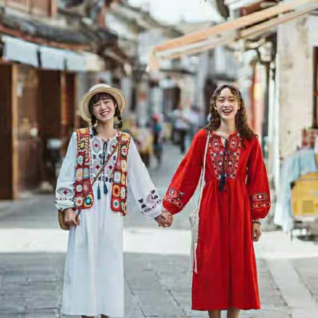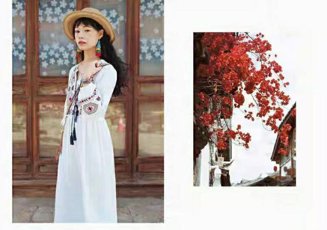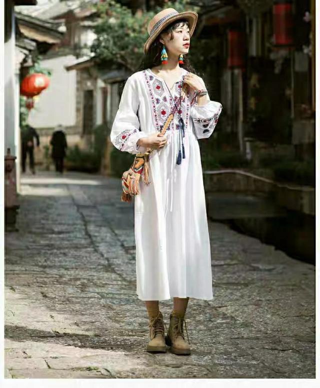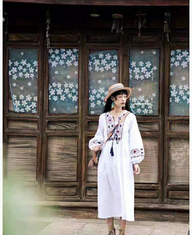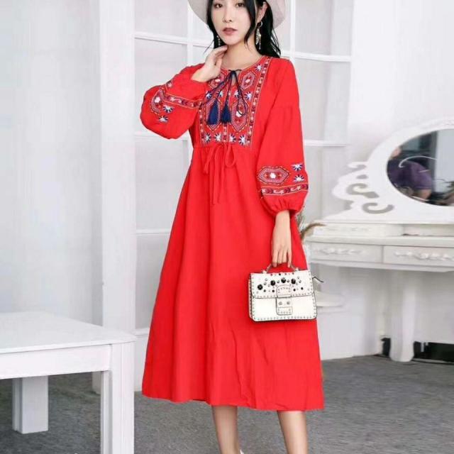 ロングワンピース マキシ丈 花柄 ワンピース 綿 ロング ワンピ 民族風 エスニック風 長袖 ゆったり 体型カバー Aライン マキシワンピース