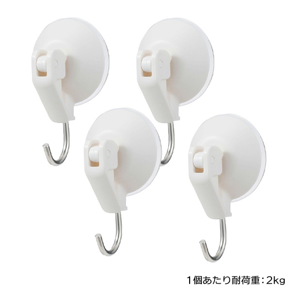 レバー式 吸盤 ツールフック 小 4個入 H00476 | 強力 吸盤 フック キッチン 浴室 引っ掛け 浮かせる 収納 冷蔵庫 洗濯機