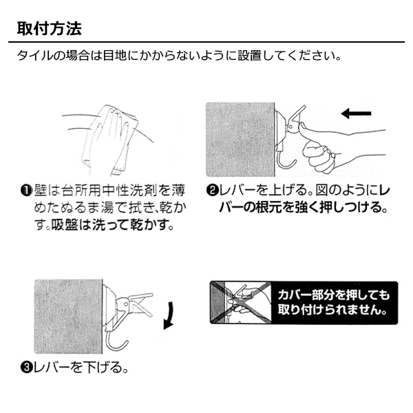 ご注意壁や吸盤に汚れ、ホコリなどがあると付きません。
