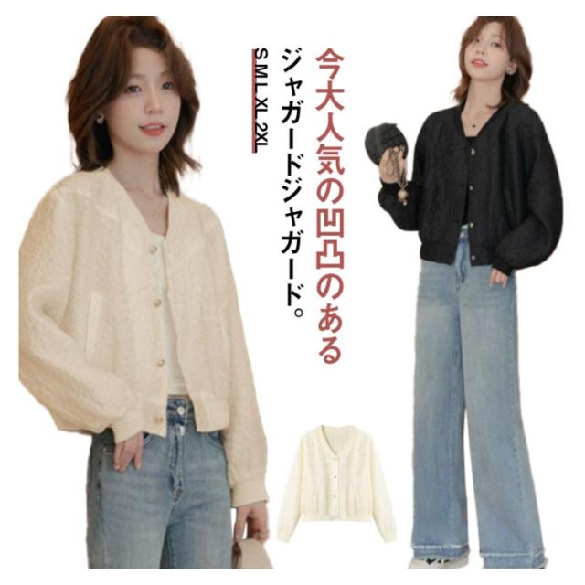 ノーカラージャケット レディース ジャガード ジャンパー ブルゾン ジャケット Vネック 秋服 ジャケット ぽこぽこ ジャガードブルゾン アウター 秋 冬 秋アウター