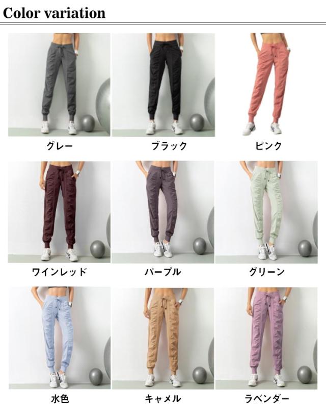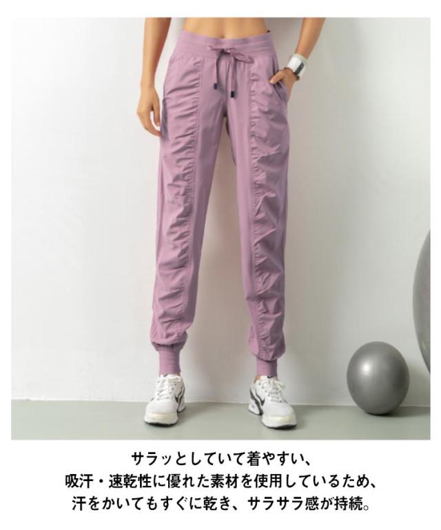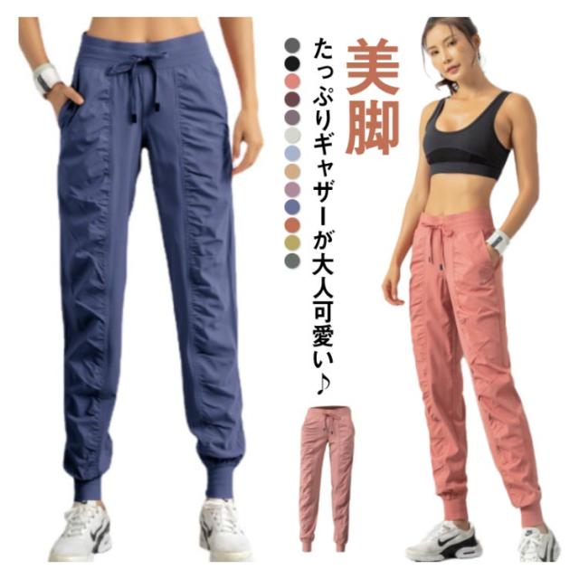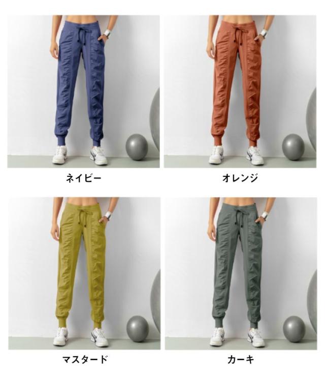 ランニングパンツ 吸汗 レディース 速乾 トレーニングウェア スポーツパンツ 裾リブ ジムウェア フィットネスウェア ランニングパンツ ギャザー ウェストゴム 可愛い ジョガーパンツ
