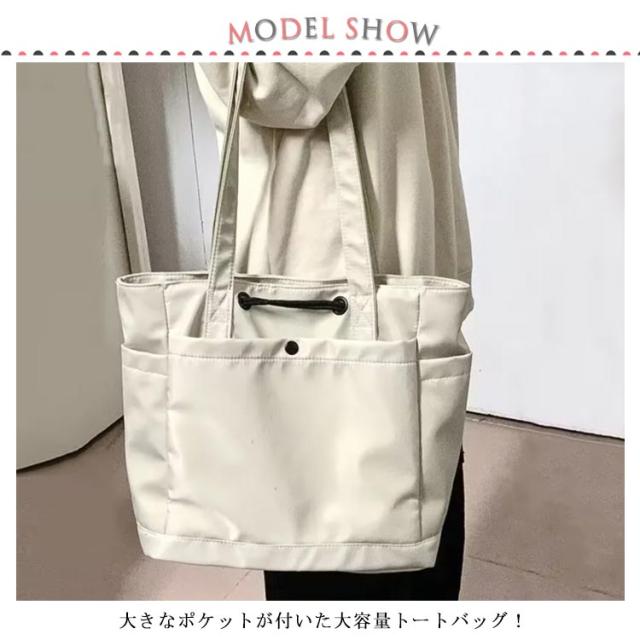 | ファスナー付きで安心!ナイロン地の大容量トートバッグ! 大きなポケットが付いた大容量トートバッグ! 書類やファイルはきちんと入れる大きいサイズ、通勤やビジネスシーンでの活躍が期待できます。 ショルダーバッグにもなるので旅行やマザーズバッグなど両手をふさがれたく無いときにも最適です。 シンプルで洋服を選ばないデザイン。 | |