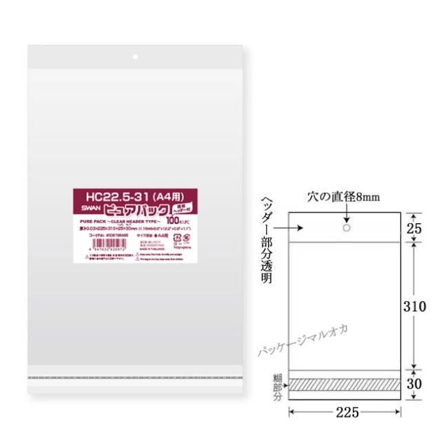 ヘッダー付 OPP袋 ピュアパック HC22.5-31 (A4用) 100枚