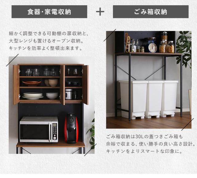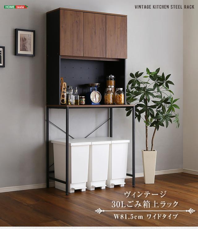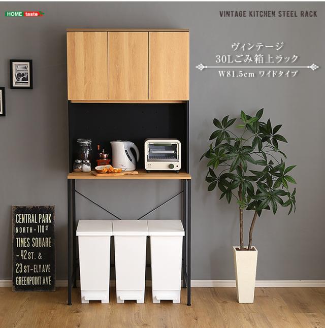 ヴィンテージ 30L ごみ箱上ラック 幅81.5cm 2色対応 ワイドタイプ レンジ台 ゴミ箱収納 ごみ箱収納 食器棚 家電収納 収納ラック コンセント付き キッチンラック キッチン ダイニング 台所 おしゃれ 北欧