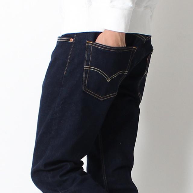 素材は程良い厚さのストレッチデニムを使用。 伝統のツーホースパッチや、細部までポイントを押さえた作り込みが“Levi's”の歴史を感じさせてくれます。 シルエットは股上が普通で、腰回りに少しだけ余裕を持たせ、ヒザからスソにかけて少し細くなったレギュラーテーパード。 太すぎず、細すぎない、ちょうどいいシルエットはコーディネートを選ばず、幅広い年代の方におススメできるアイテムです。 |