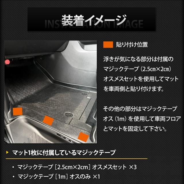 ■元に戻りやすい素材ですので、到着時に型が付いている場合は平らな場所で数日置いてください。 それでも戻らない場合は、ドライヤー温風を当てながら手で反対側に丸めて調整してください。 ■適合車種以外の車両には使用しないで下さい。 ■本商品と車体を固定する付属のマジックテープは推奨位置に貼り付けてご使用下さい。 ■社外マットご使用の場合、ぴったりと合わない場合がございます |