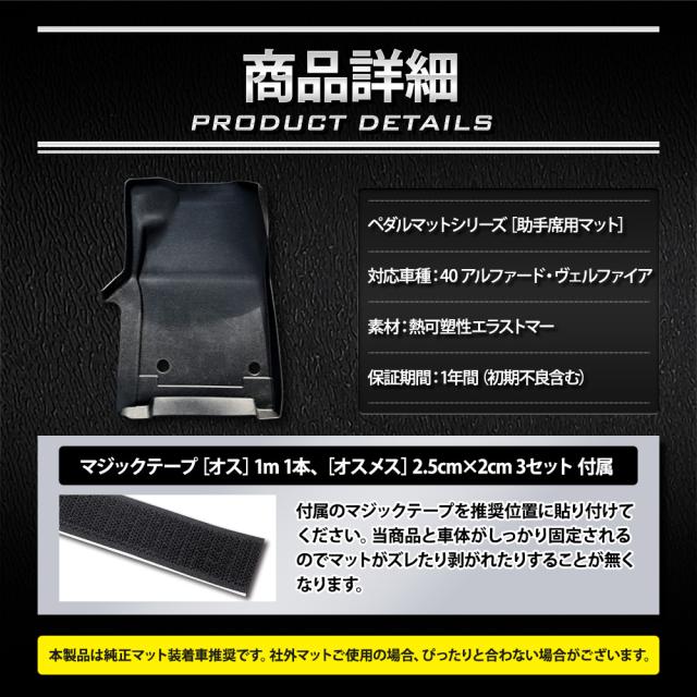 40系 アルファード・ヴェルファイア 専用 カーペダルマットシリーズ 助手席用マット