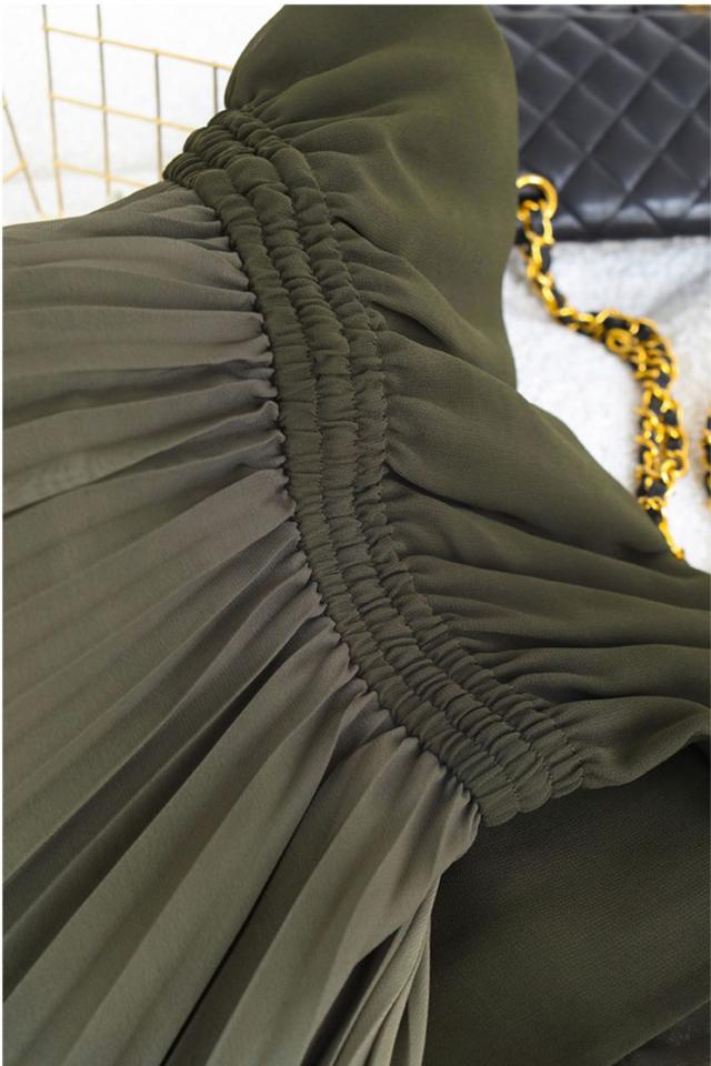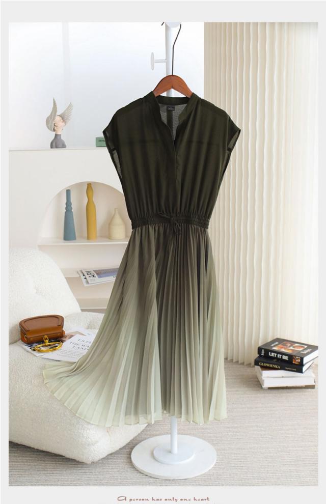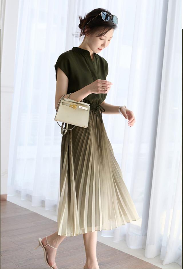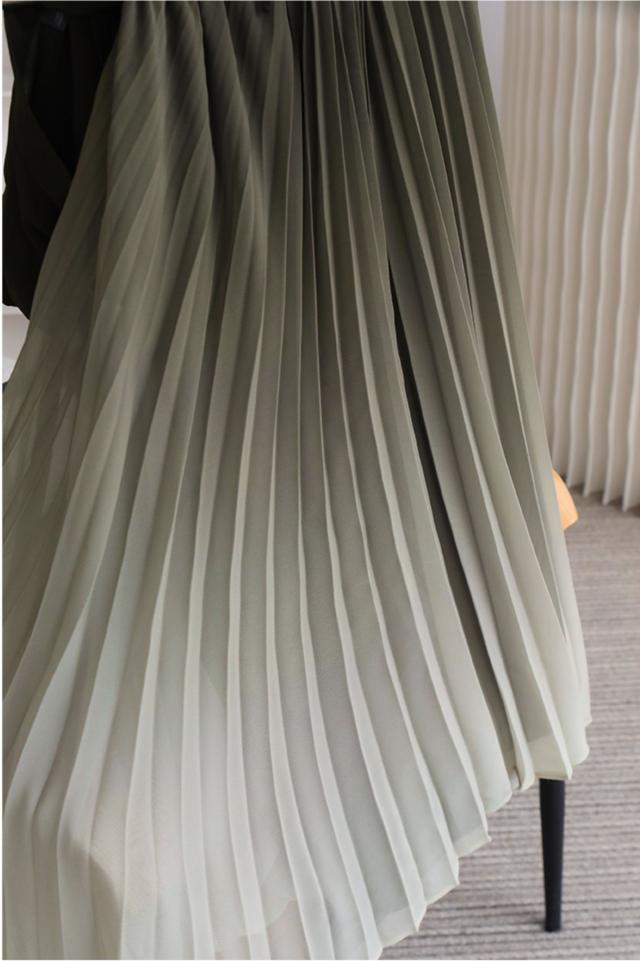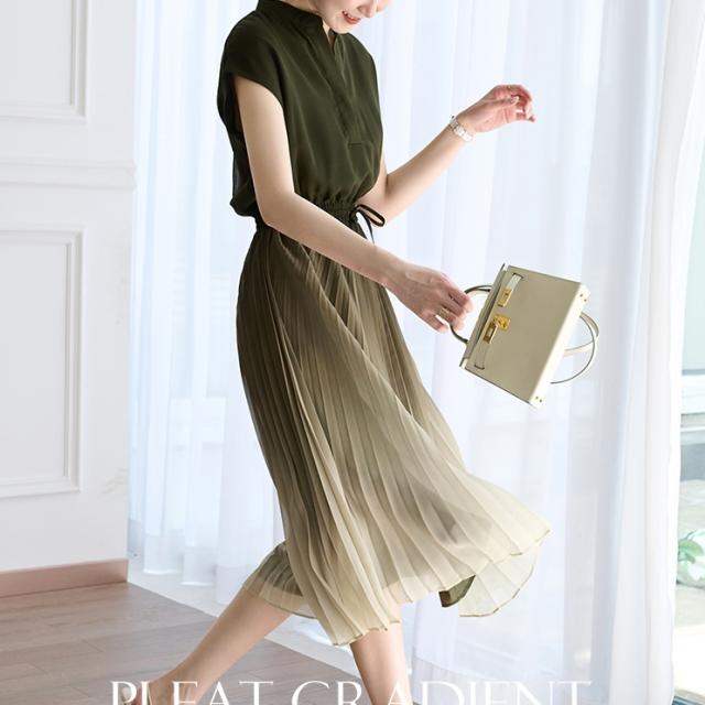 美人度アップ!シックなグラデーションのプリーツフレアワンピース。
