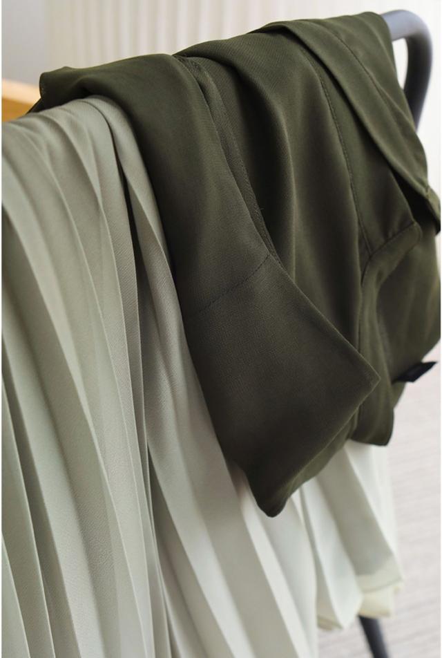 すっきり開いたスキッパー襟が大人っぽさを醸し出します。