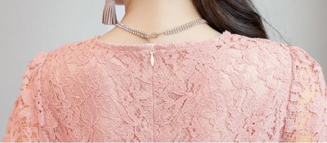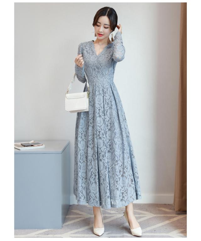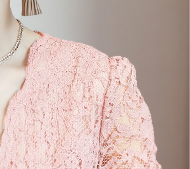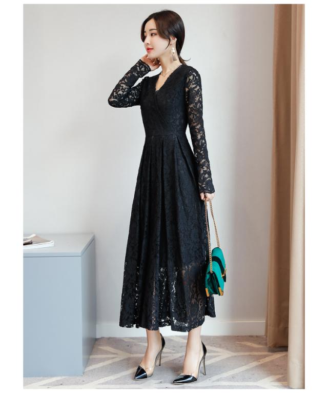 カジュアルなカシュクールデザインを取り入れた総レースドレス。
