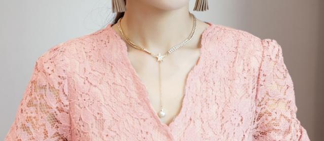 程よく開きのVネックはデコルテを美しく見せてくれ、ネックレスとの相性も抜群。