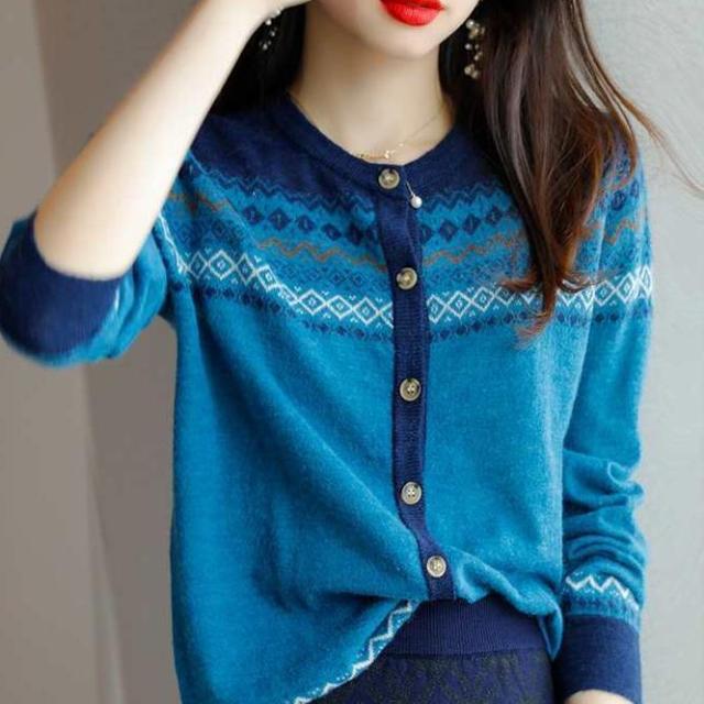 ヴィンテージ柄がお洒落なカーディガン